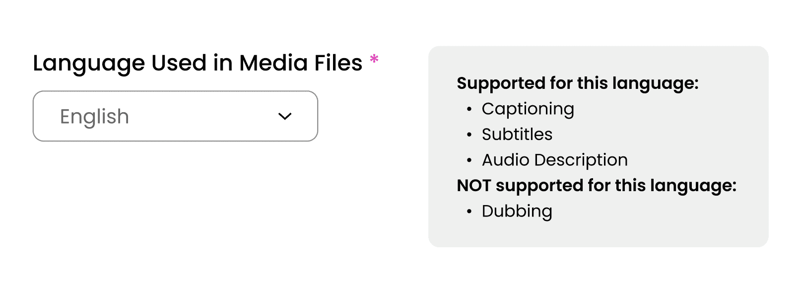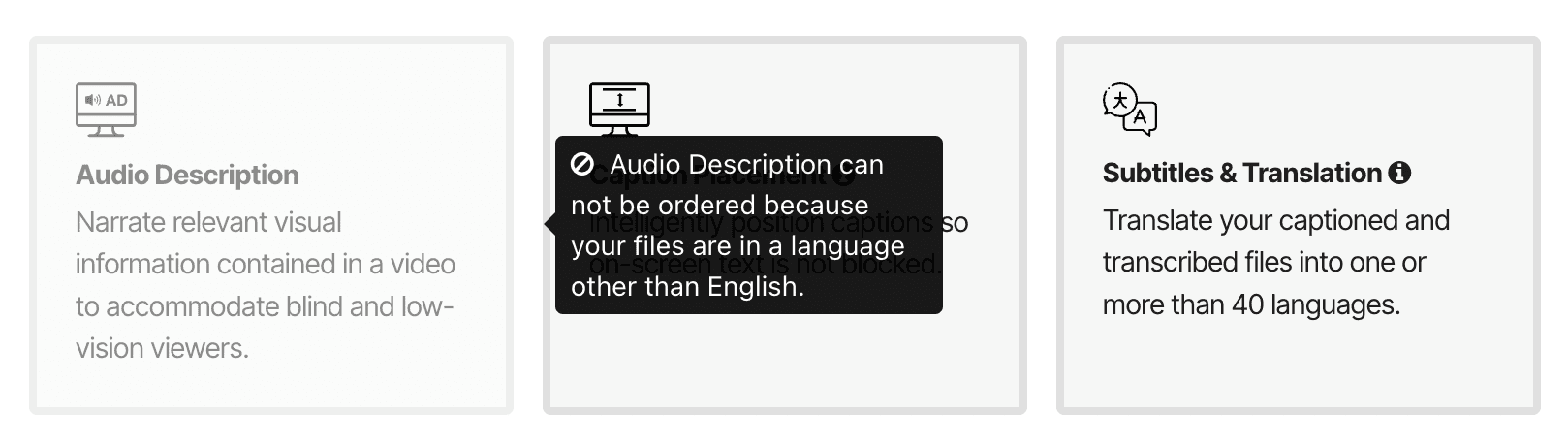 I had differing perspectives from the Product Marketer about the use of disabled controls, or greyed out options, to indicate features unavailable for the selected language. He believed these disabled controls increased awareness of additional offerings and potential upsell opportunities, but I believed they created confusion by presenting users with options they couldn’t act on. While I was thinking for the user, he was thinking for the business. I initiated a solution bridging both needs by designing a contextual limitation message that appeared only after selecting a language to communicate availablity without clutter.