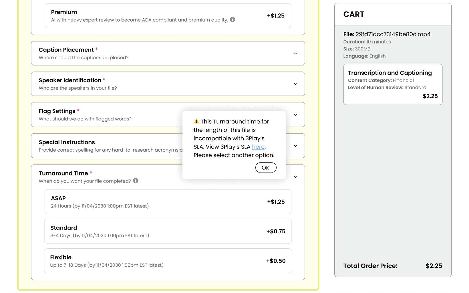 Redesigning a complex B2B SaaS Video Accessibility & Localization service order form to reduce errors.